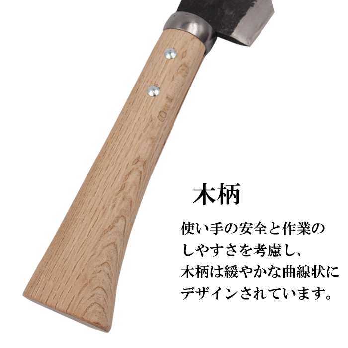 木柄は使い手の安全と使いやすさを考慮し、緩やかな曲線状にデザインされています。