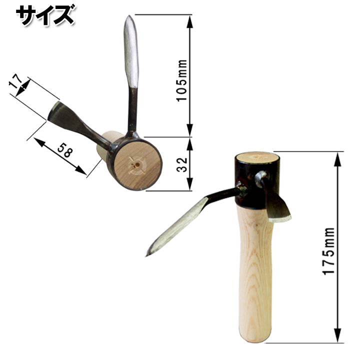 【ここがポイント!】 広島県で牡蠣(カキ)を剥く際に使われているカキ打ちの道具です。 2本爪のカキ打ちで、長い刃でカキの殻を開き、短い刃で貝柱を取ります。 ※製品仕様・デザイン等は、予告なしに変更することがありますので御了承ください。 ※商品の色が、お客様のPC環境等により違って見える場合がございますが御了承ください。 【商品仕様】 全長:(約)175mm 重量:(約)193g 材質 / 刃部:鉄、木柄:朴