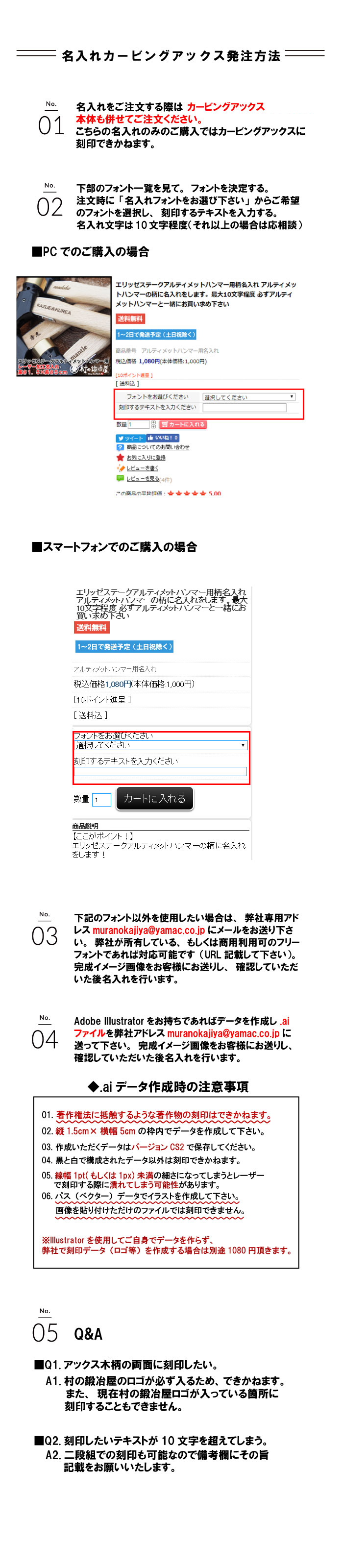 カービングアックスと、この名入れをカートに入れて注文してください。