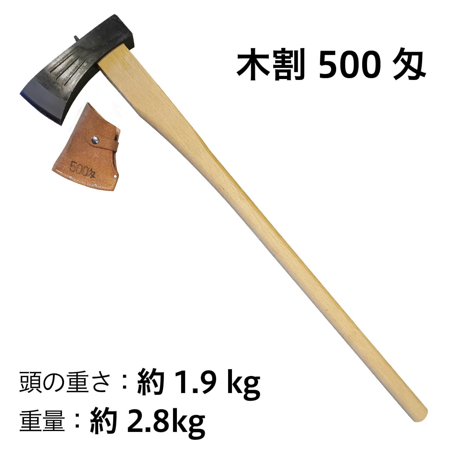 【頑張って送料無料!】越後三条打刃物 水野製作所作 木割500匁(1.9kg) 白樫900mm サック入 振り下ろすだけで真っ二つ!余計な力は不要です 010-034