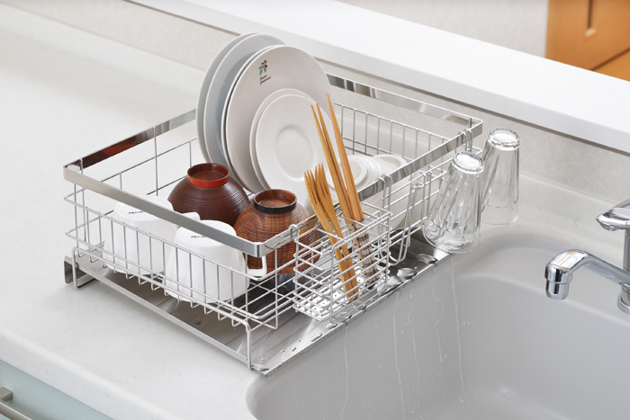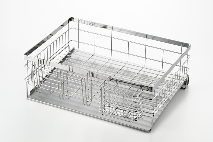 【ここがポイント!】 傾斜の付けられた底面部により、切った水がそのまま流れ落ちてくれるので、 水を捨てる時の手間がありません。 また、底部は取り外し可能なのでお手入れもラクラク。 コップスタンドや箸、スプーンなどのカトラリー収納に便利なラックも設けられています。 四方に配された鏡面風仕上げフラットバーが高級感を演出。 本体に18-8ステンレス使用で清潔で清掃もしやすい。 安心と信頼の日本製。 【商品詳細】 サイズ:幅35.5×奥行42×高さ15.5cm 重 量:約1.7kg 材 質:本体 18-8ステンレス 底部トレー 18-0ステンレス 生産国:日本