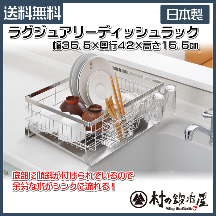 【頑張って送料無料!】安心の日本製! 内山産業 ラグジュアリーディッシュラック UC-115 底面に傾斜が設けられているので水がそのままシンクへ 幅35.5×奥行42×高さ15.5cm 四方に配された鏡面風仕上げフラットバーが高級感を演出! ラクラク水切り 皿 干し