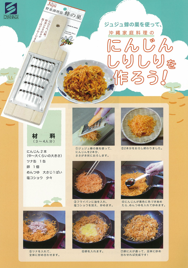 【頑張って送料無料!】ネコポス配送沖縄家庭料理のにんじんしりしり料理ならこれ!樹・ジュ(ジュジュ)野菜調理器蜂の巣 04005 太千切りに最適なφ6mmの穴です!キャロットラペです!