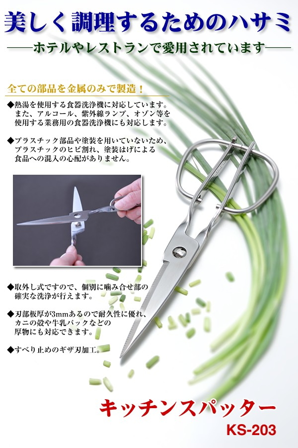 鳥部製作所 新型キッチンスパッター KS-203 オールステンレスキッチン鋏 取り外し可能で食洗機OK! ネコポスでの発送のため代金引換・日時指定不可