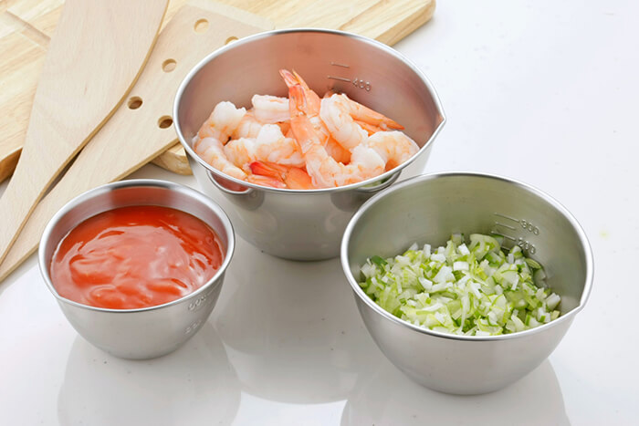料理の下ごしらえや小分け収納などに、大きさに応じて使い分けできるボールセット。