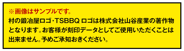 ※村の鍛冶屋ロゴ・TSBBQロゴは株式会社山谷産業の著作物です。お客様がご希望する箇所に刻印することはできません。予めご了承ください。