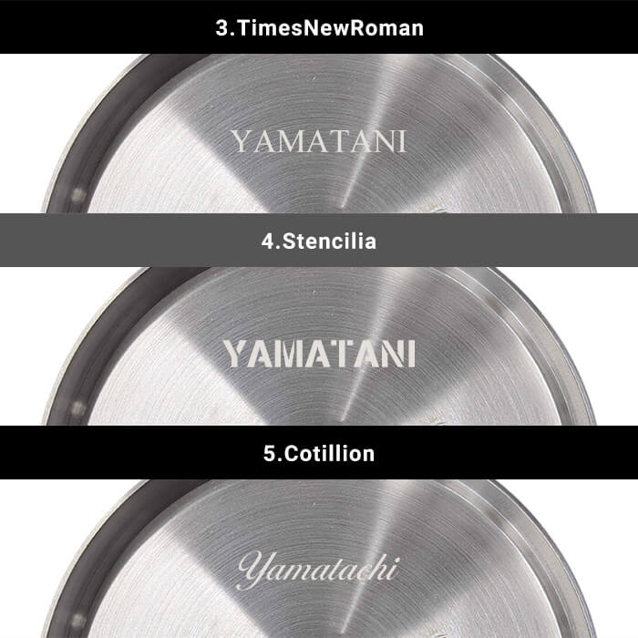 ※刻印可能なフォントは予告なく変更になる場合があります。予めご了承ください。