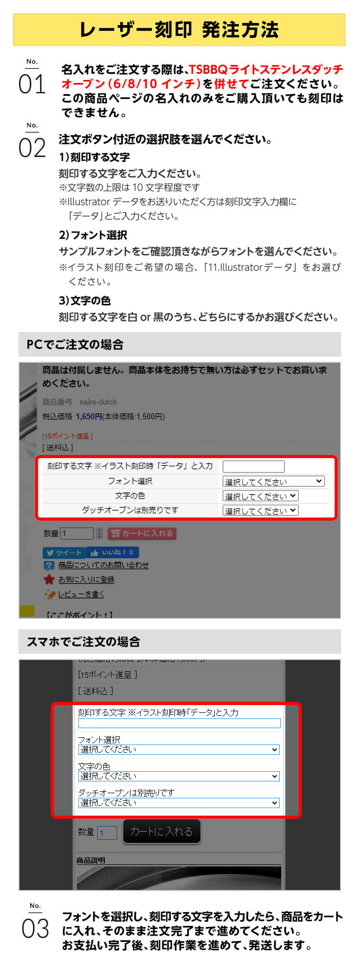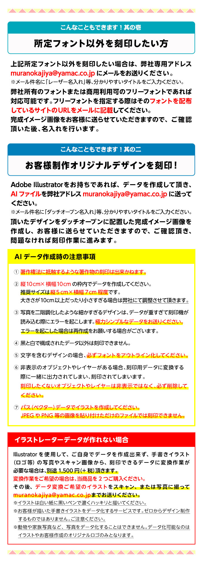 ※メールでデータを送る際はタイトルに「ダッチオーブン名入れデータ」と入れてください。