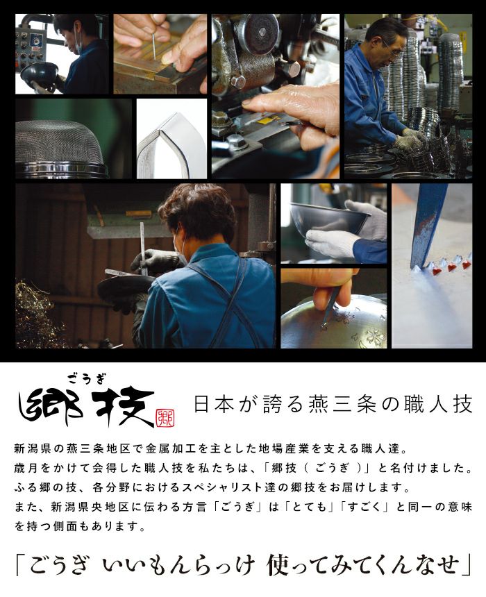 他の画像を見る 新潟県・燕三条の職人による”ふる郷の技”「郷技(ごうぎ)」シリーズ。 燕三条製|YJ3447 郷技 ステンレス 着脱式ハンドル鍋 4点セット メイド・イン・燕三条 ヨシカワ 税込価格 ¥ 16,500 税込 詳細を見る お気に入りに登録する