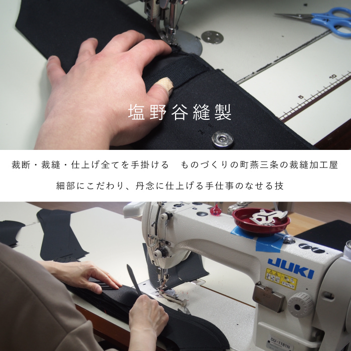 ここがポイント!ものづくりの町燕三条の裁縫加工屋、塩野谷縫製とのコラボポシェットです。