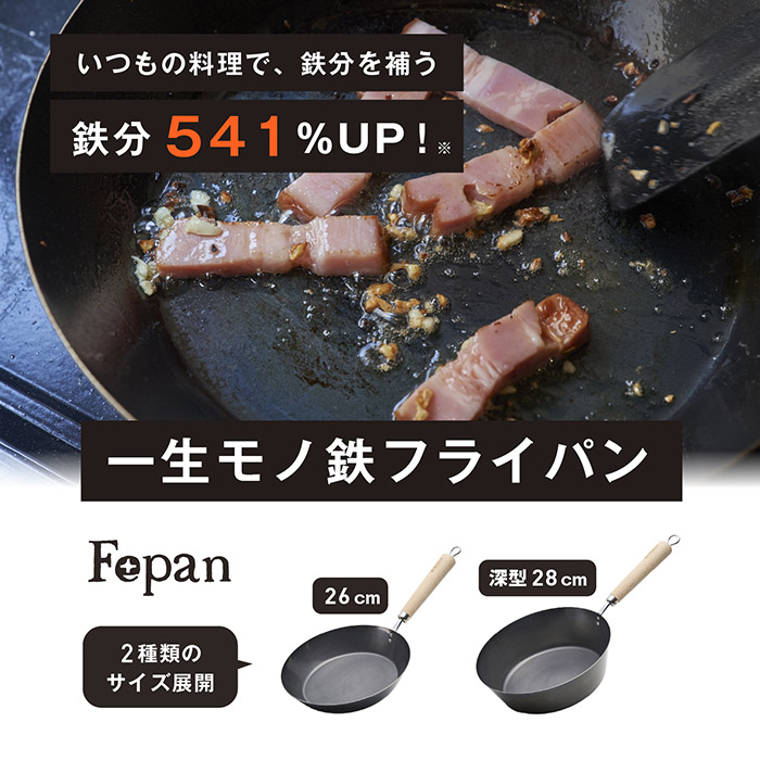 そこでもっと鉄分を摂りたい人のために、内側は塗装なしのフライパン「Fepan(エフパン)」を商品化しました!