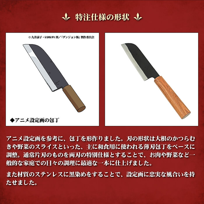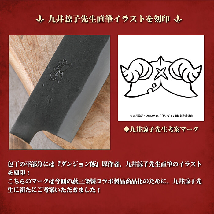 包丁の平部分には『ダンジョン飯』原作者、九井諒子先生直筆のイラストを刻印!