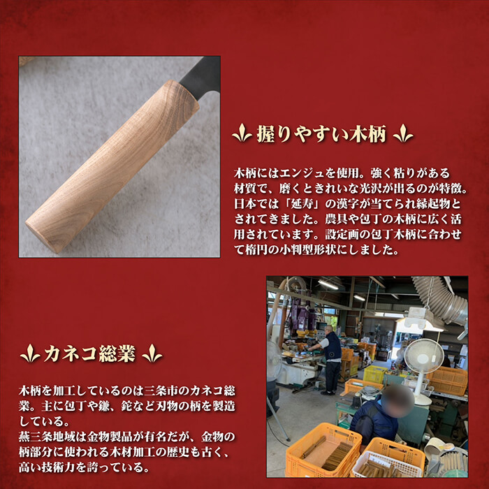 燕三条地域は金物製品が有名だが、金物の柄部分に使われる木材加工の歴史も古く、高い技術力を誇っている。