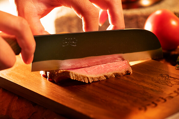 通常片刃のものを両刃の特別仕様とすることで、お肉や野菜など一般的な家庭での日々の調理に最適な一本に仕上げました。