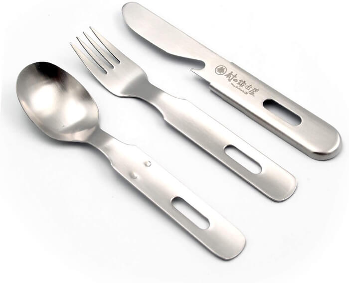 ナイフの中にスプーンとフォークが収納できるので非常にコンパクト。