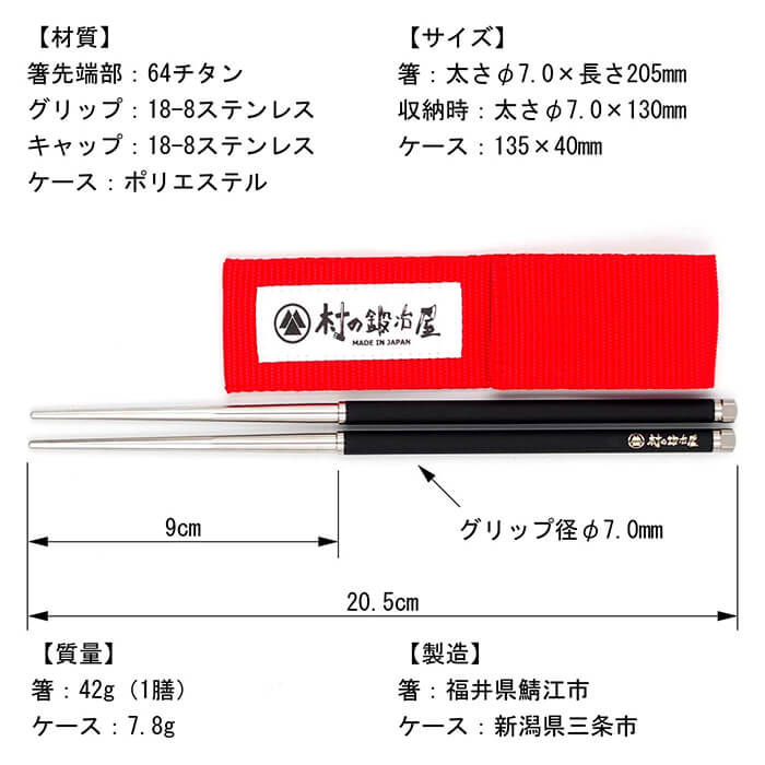 村の鍛冶屋 ワンタッチ チタン箸用エンドキャップ