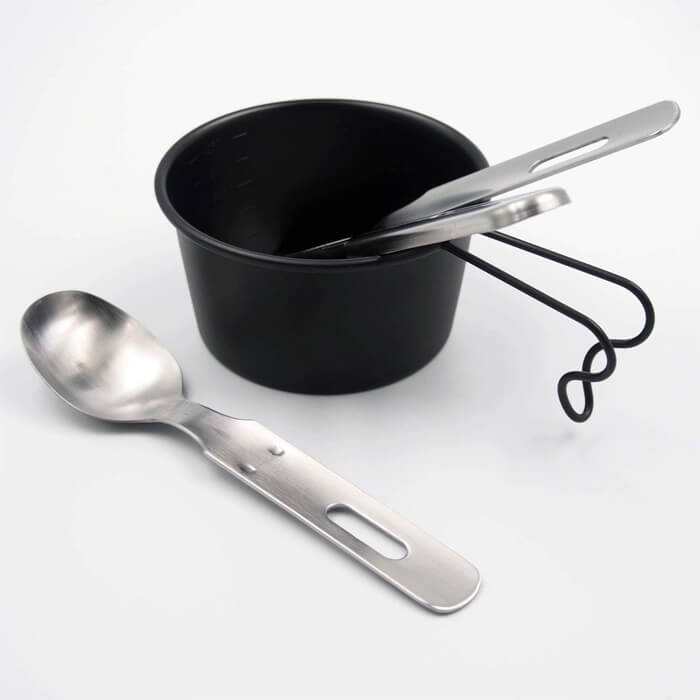 ・18-8ステンレスで製造された深型シェラカップなので、直接火にかけられるので簡単な湯沸かし・調理もできます。
