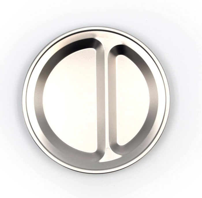 村の鍛冶屋 ステンレスランチプレート 2ツ割丸型プレート【ヘアライン加工タイプ】
