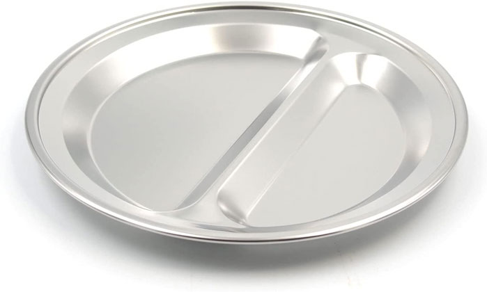 村の鍛冶屋 ステンレスランチプレート 2ツ割丸型プレート【ブラスト加工タイプ】[MK-7742]<燕三条製>錆びにくい18-8ステンレススチール製。耐久性があり、変形しにくい!※ネコポス配送【頑張って送料無料!】