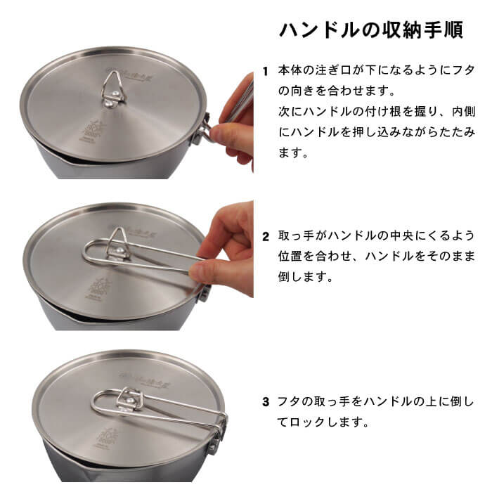 材質:本体 18-0ステンレス、フタ・ハンドル 18-8ステンレス、収納袋 ナイロン