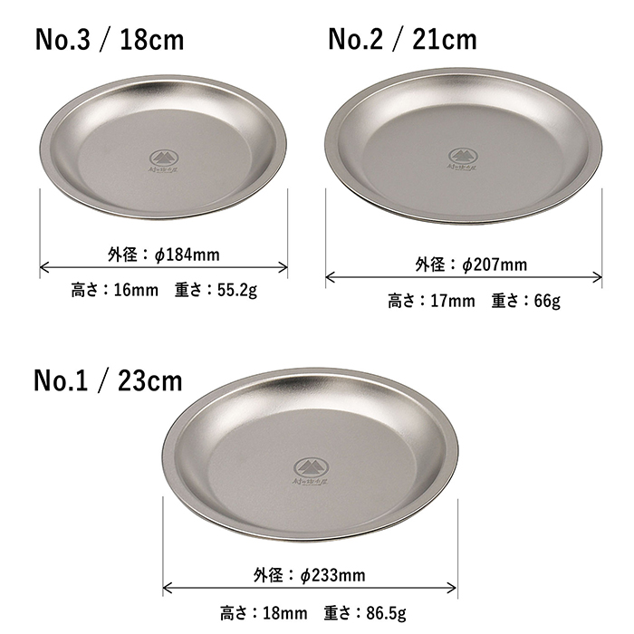 チタンパイ皿 3枚セット 18cm+21cm+23cm (No.3+No.2+No.1)