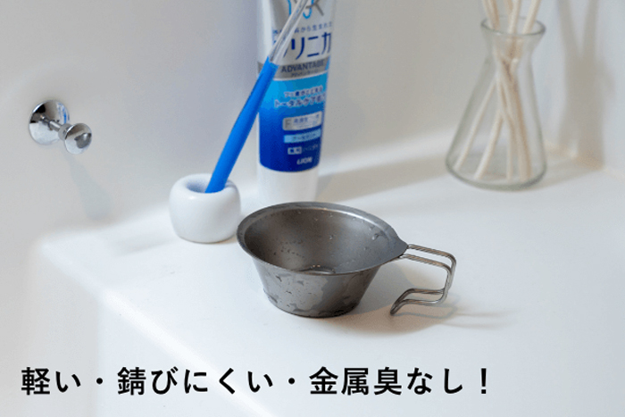 チタンは水やサビに強く、うがいや歯磨き用のカップとしてお洒落にかわいく使えます!