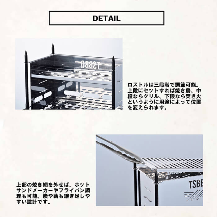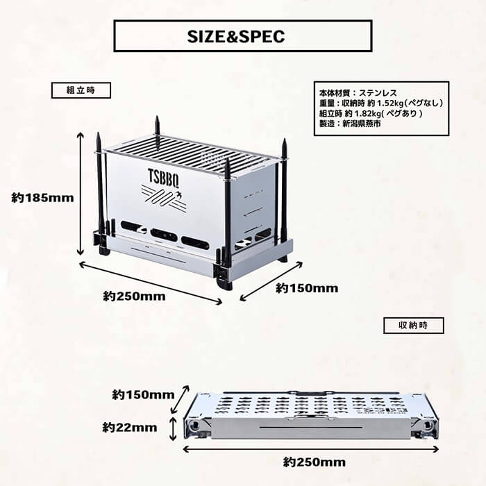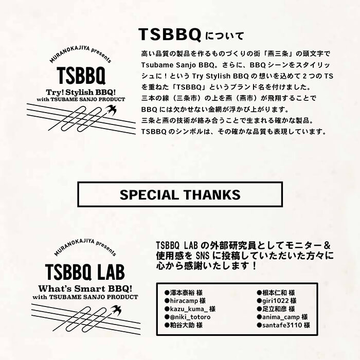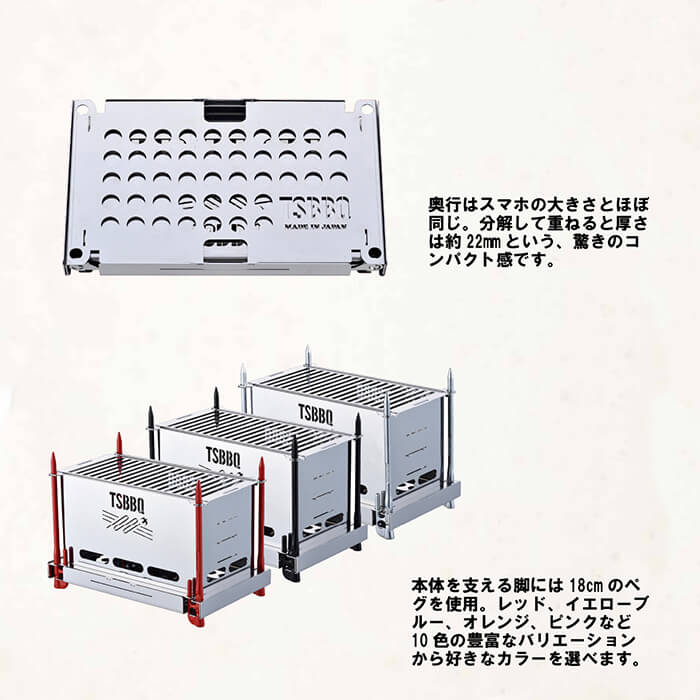 開発ではプロダクトデザイナー高橋悠氏、「TSBBQ」シリーズを企画販売する山谷産業、日本有数の金属加工の町「燕三条」のメーカー(株)トクニ工業がコラボレートして作り上げました。