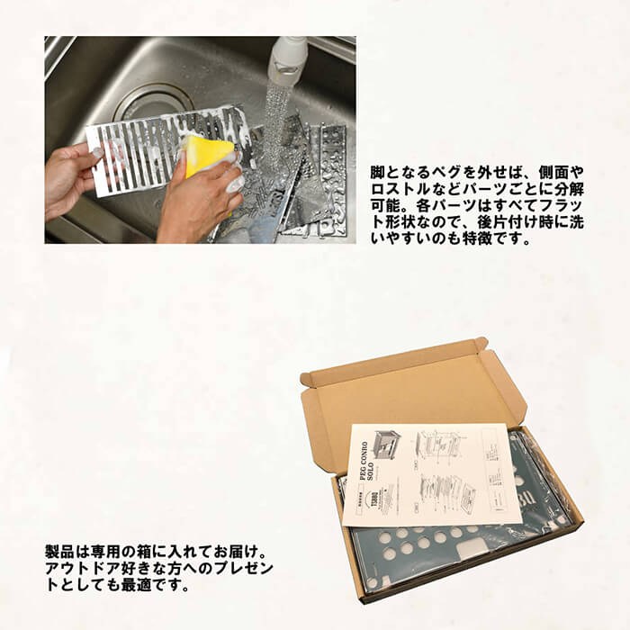 脚となるペグを外せば、側面やロストルなどパーツごとに分解可能。