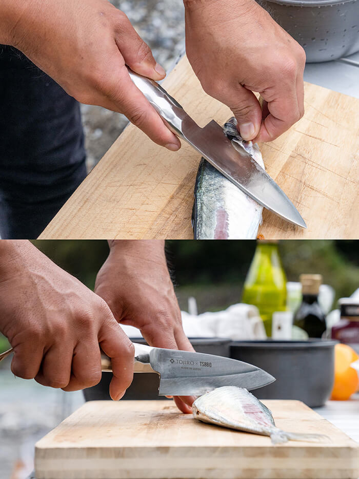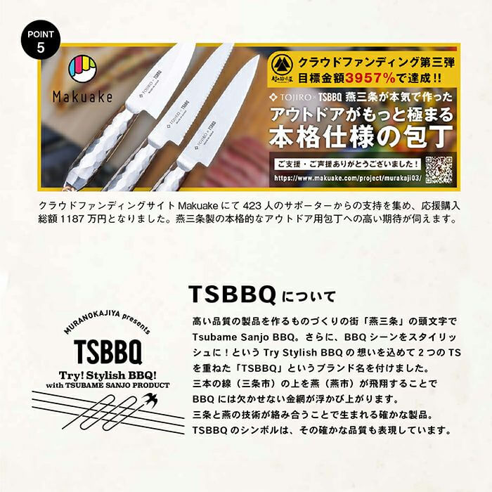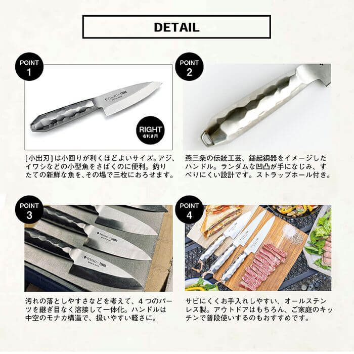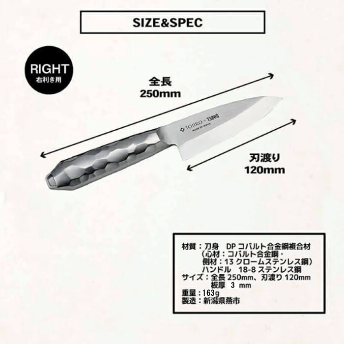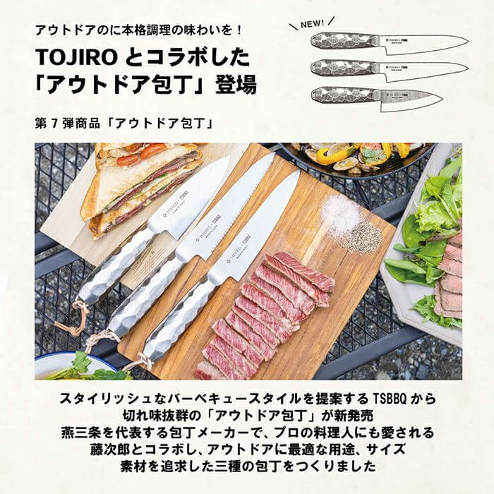 【燕三条製】TOJIRO×TSBBQ アウトドア包丁 小出刃 右利き用[TSBBQ-017]藤次郎とのコラボにより誕生したアウトドアに最適なオールステンレス製包丁