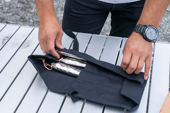 【燕三条製】TSBBQ アウトドア包丁ケース[TSBBQ-020]帆布製 革ストラップ3本付き(包丁別売)※ネコポス配送のため代引き、日時指定不可