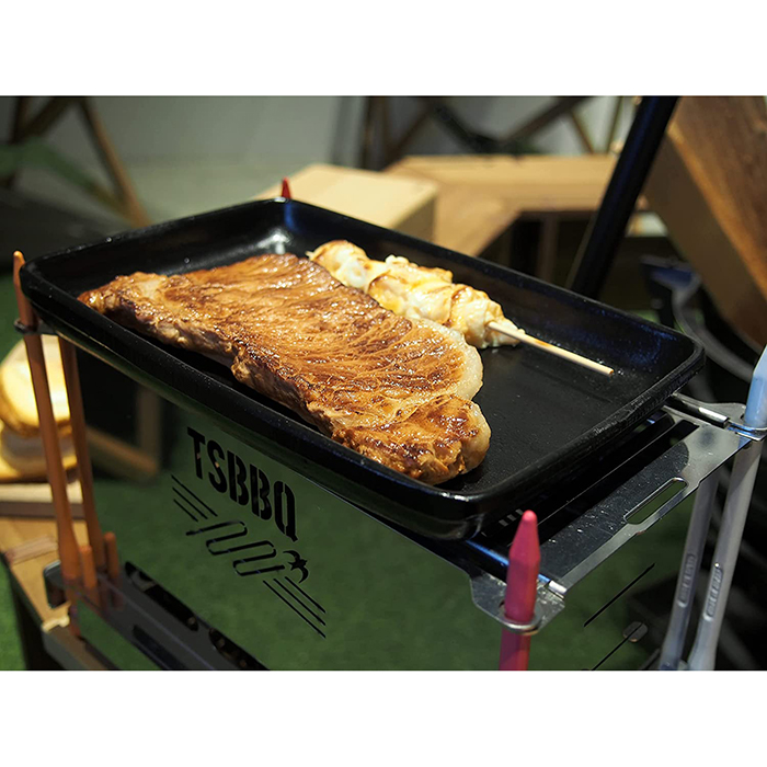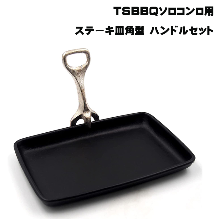 TSBBQソロコンロ用 ステーキ皿角型E+皿用ハンドル#707セット【頑張って送料無料無料!】IH対応 TSBBQペグコンロにぴったりなサイズ!