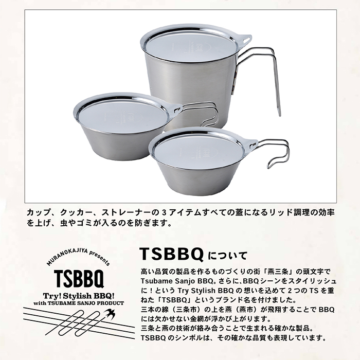 【TSBBQ-025】TSBBQ ステンレスシェラリッド【燕三条製|TSBBQ】カップ、クッカー、ストレーナーのフタに浅皿としても使用可
