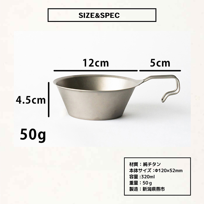 TSBBQチタンシェラカップ320(TSBBQ-026)ウルトラライトギア 燕三条製チタン製なので熱くなりにくい&金属臭がしない縁巻きなしで衛生的 純チタン使用