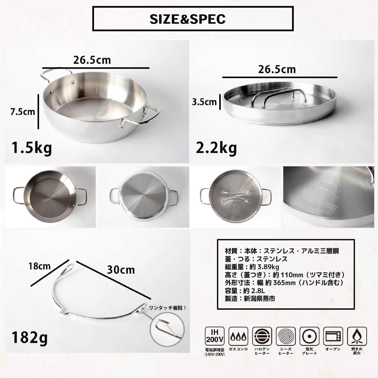 重量は鋳鉄製のものより30%軽く、オールステンレス製のものと比べても20%も軽量に仕上げました。