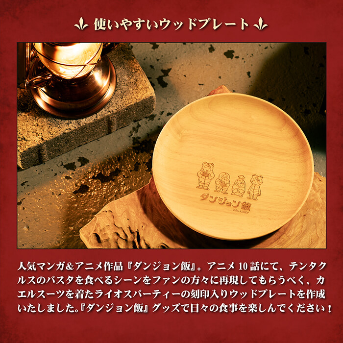 【DGM-013】ダンジョン飯 ウッドプレート20cm(ライオスパーティー)『ダンジョン飯』キャラクターとロゴを刻印カエルスーツ海外製