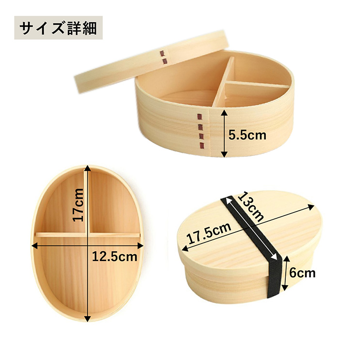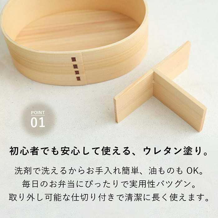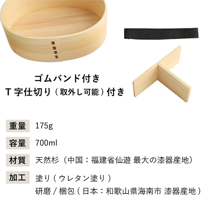 商品内容:お弁当箱本体、T字仕切り(取り外し可能)、ゴムバンド