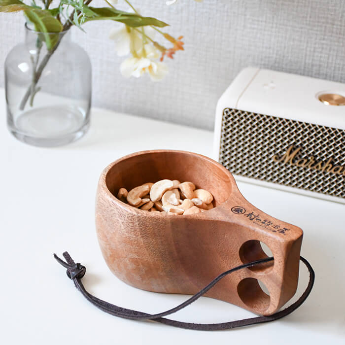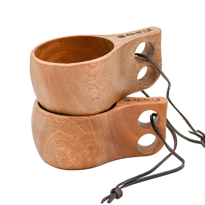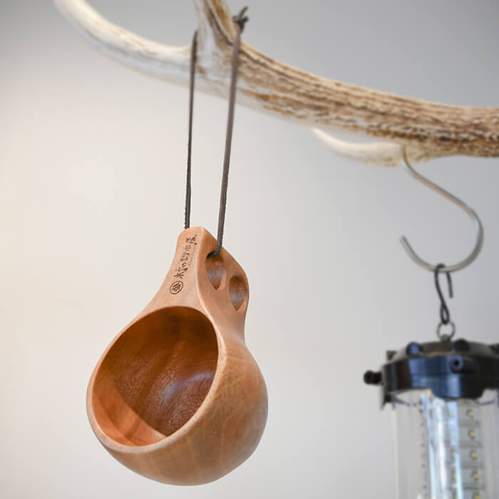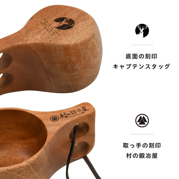 キャプテンスタッグ×村の鍛冶屋 ウッドマグ180ml 木製で丸みのあるフォルム