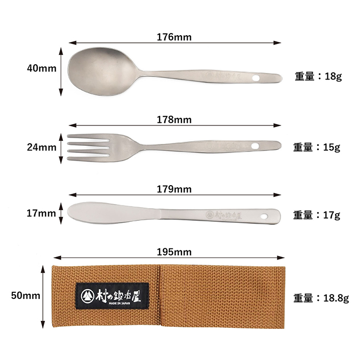 村の鍛冶屋チタンカトラリー 2本セット(スプーン・フォーク・専用ケース付き)