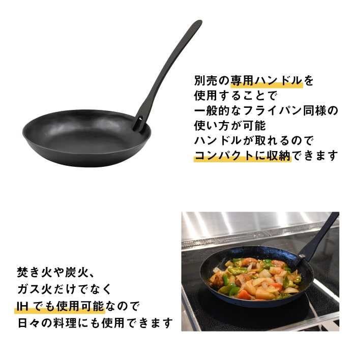 別売の専用ハンドルを使用することで、一般的なフライパン同様の使い方が可能です。