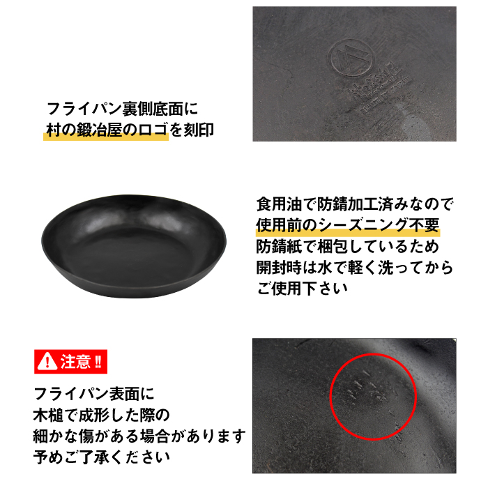 フライパン表面に木槌で成形した際の細かな傷がある場合があります。