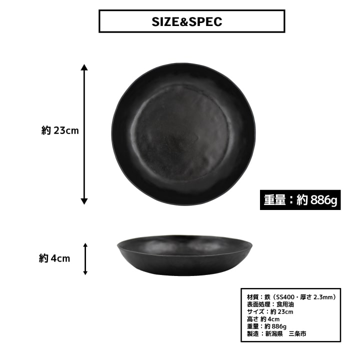 鍛冶屋が叩いた鉄フライパン皿深型 23cm