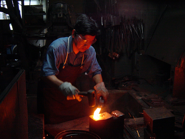 鋼を叩くことによって、強さが出て粘りが増し、