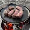 丸いプレート形状をした調理用鉄板。
