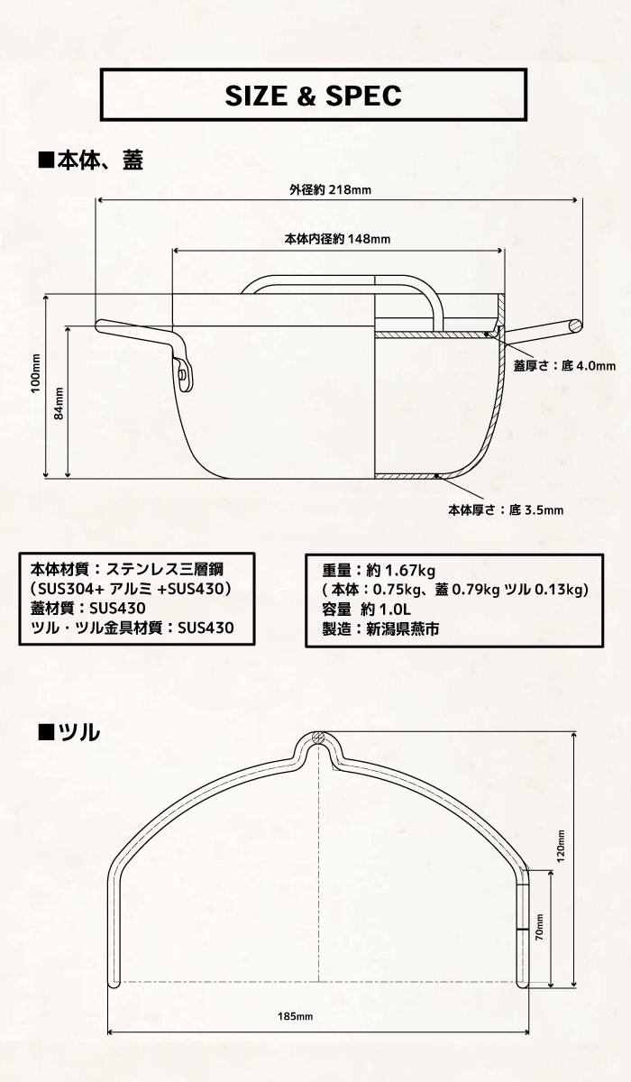 (本体:0.75kg、蓋0.79kgツル0.13kg)