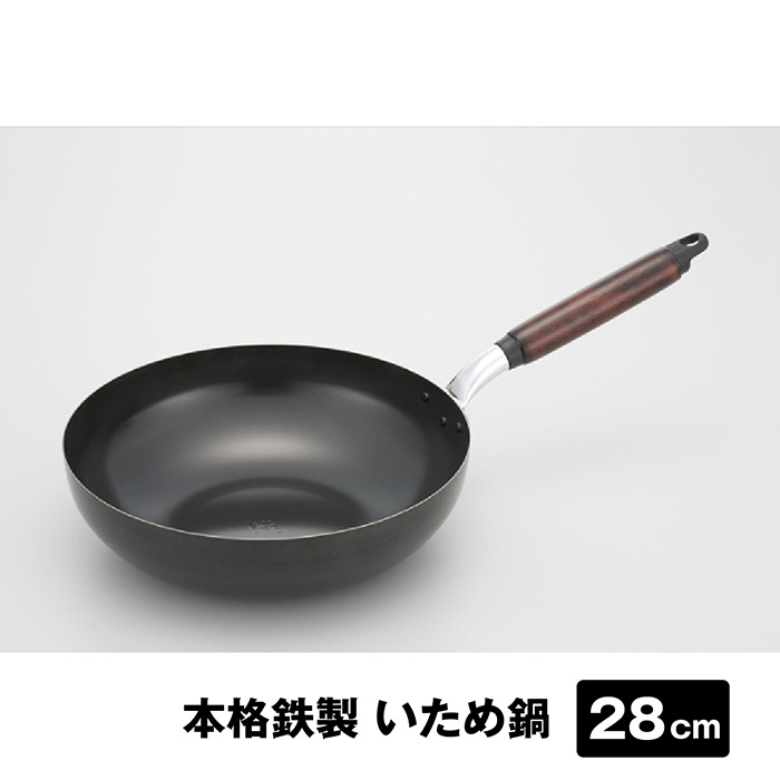 持ちやすい木製ハンドルで、熱くなりにくくご家庭でも扱いやすい鉄製調理道具です。