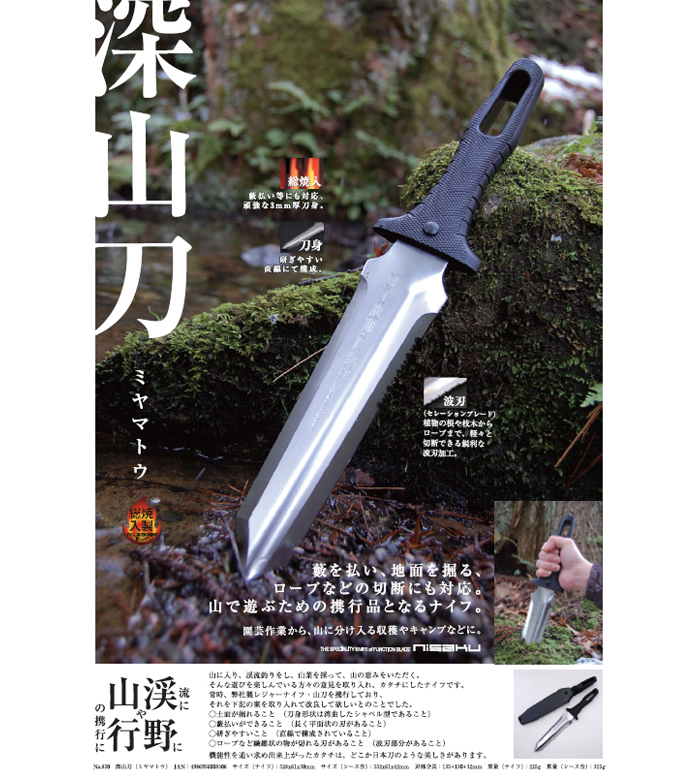 【頑張って送料無料!】 仁作 深山刀(ミヤマトウ) NO.830 和式サバイバルナイフ