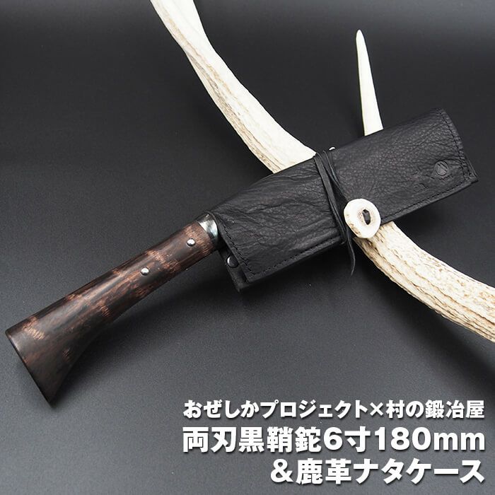 おぜしかプロジェクト×村の鍛冶屋 両刃黒打鞘鉈藤乃鉈6寸180mm&鹿革ナタケース