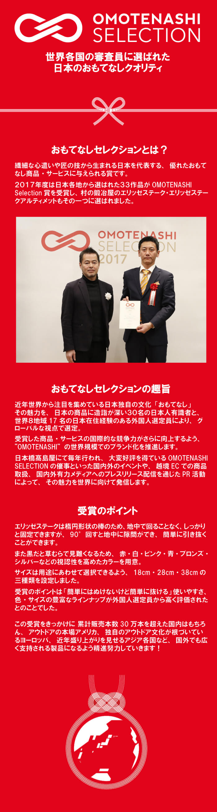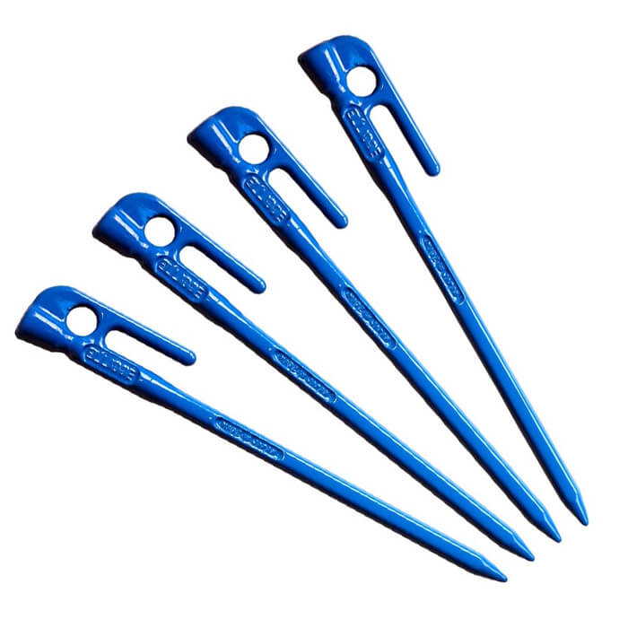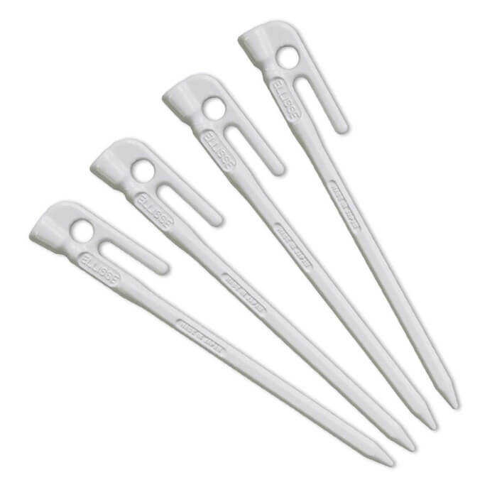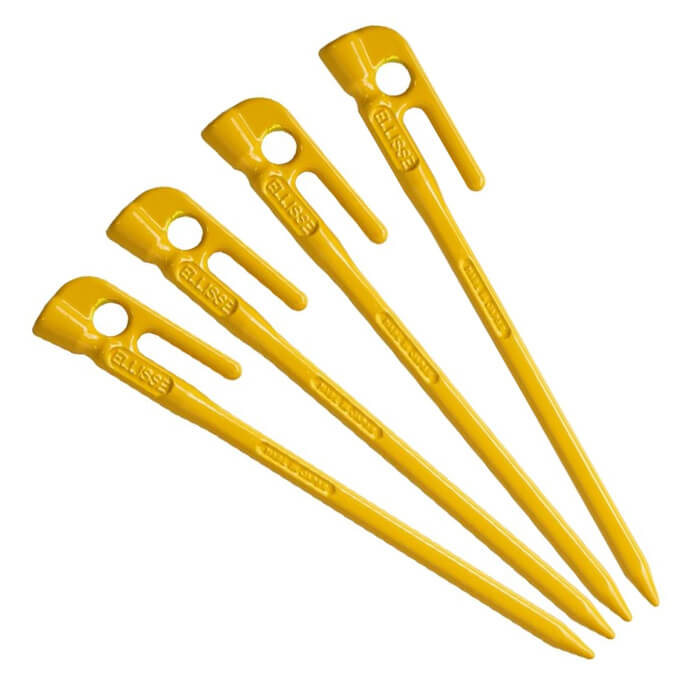 通常の丸棒のペグは地中でペグがクルクルと回り使い勝手が悪いですが、楕円のペグは、砂利や石が混じった固い地面でも入り込みが良く、地中でクルクルと回る事なく、ガッチリと固定します。