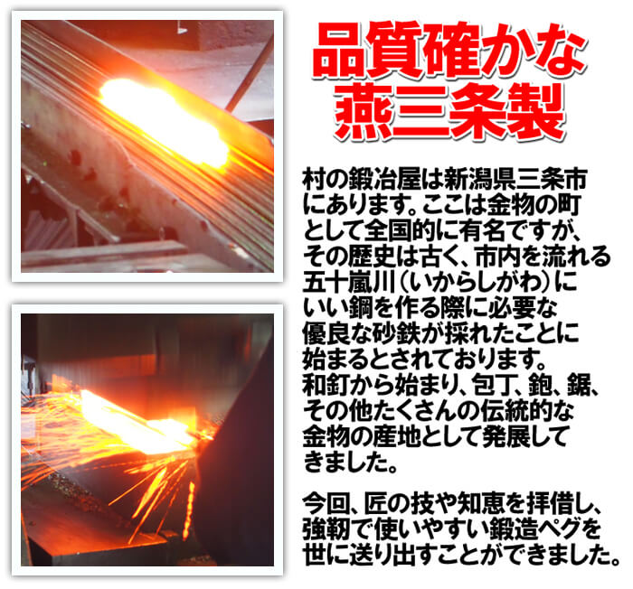 熱した鋼材に強力な圧力を加えることによって、優れた強度を持つペグが完成します。