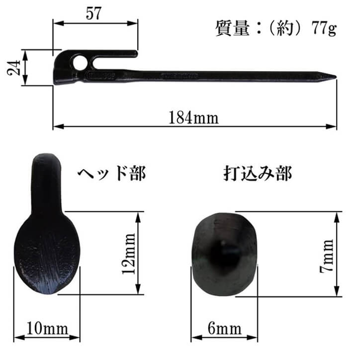 芝生や砂利などに置いたペグが目立たなくて苦労する!そんな声から、あえて色を付けました。防錆性能に優れたカチオン電着に粉体塗装を施してあります。